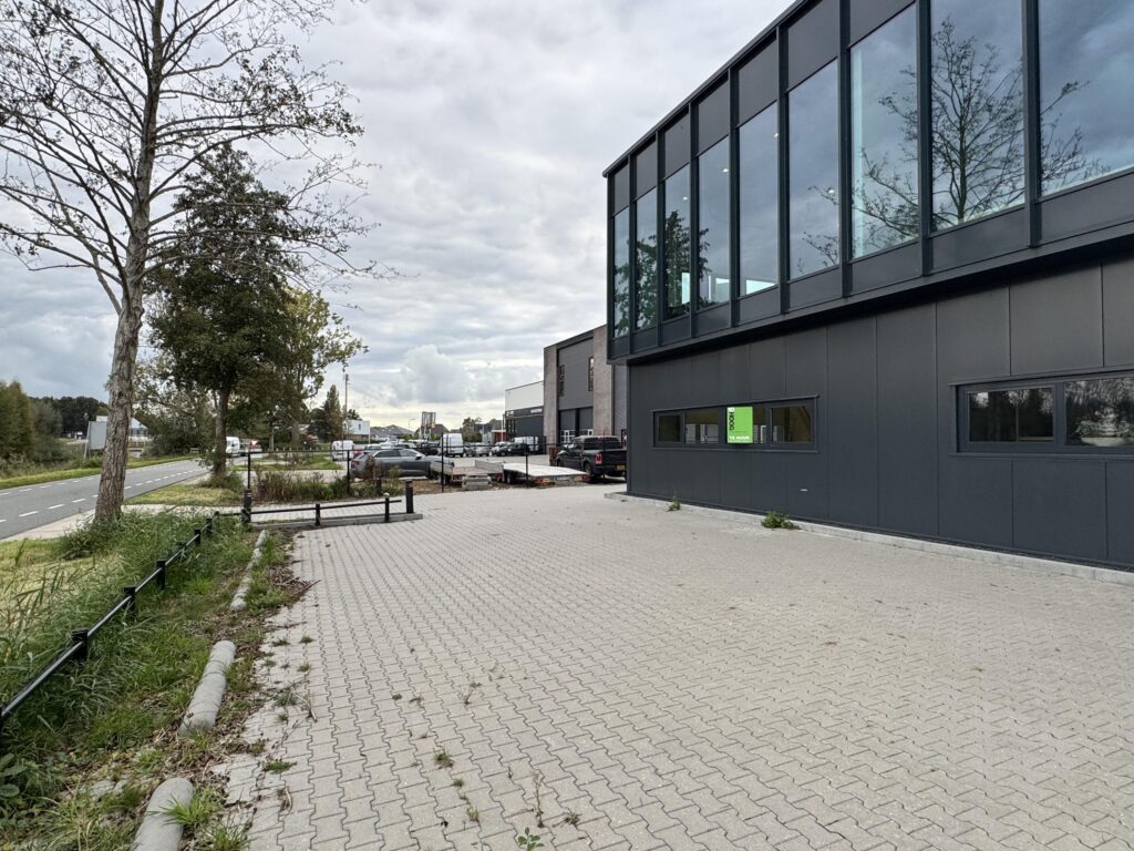 Twee parkeerplaatsen gelegen aan de voorzijde van het bedrijfsverzamelgebouw.