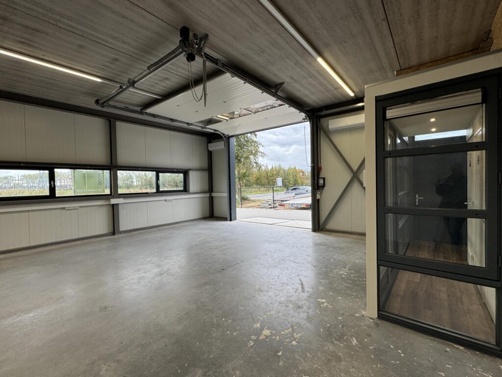 – elektrisch bedienbare overheaddeur met afstandsbediening (breedte 3,5 m1 x hoogte 3,5 m1)
