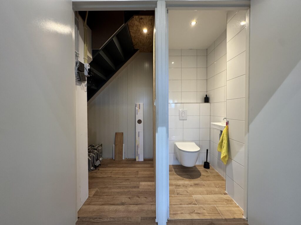 – sanitaire voorziening v.v. toilet en wastafel (onder trapopgang)