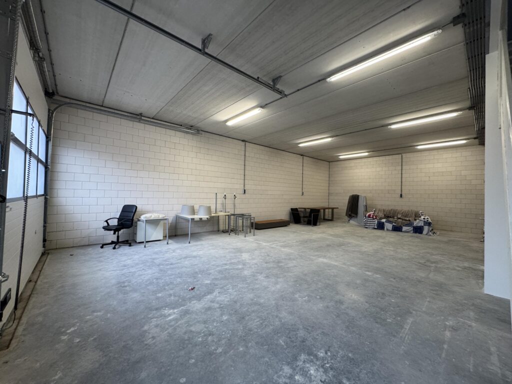 De begane grond bestaat o.a. uit een bedrijfsruimte met toilet, wasbak en een grote elektrische overheaddeur. Op de begane grond bevindt zich tevens de meterkast met nutsaansluitingen en een vaste trap naar de verdieping.